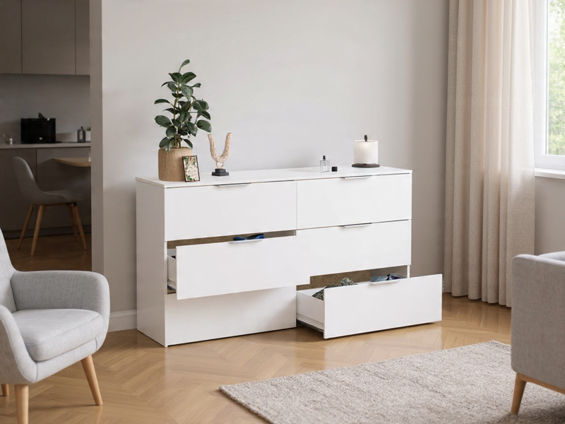 Offrez à votre intérieur une sensation immédiate de calme, de lumière et d’harmonie avec cette commode blanche 6 tiroirs au design moderne. Son esthétique épurée et sa finition blanche mate illuminent la pièce et créent une atmosphère apaisante, où chaque détail invite à l’ordre et au bien-être.