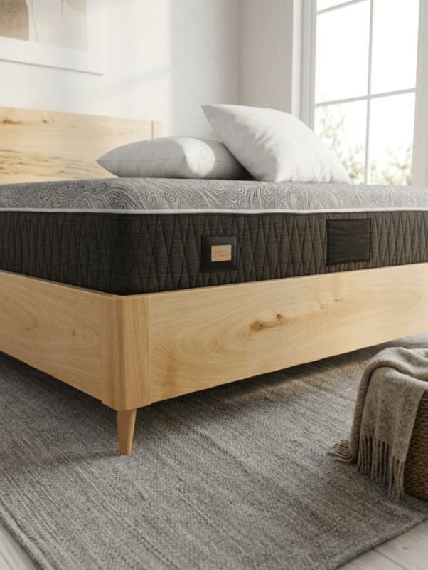 Fabriqué en 100% hêtre massif, ce lit garantit une solidité exceptionnelle et une durée de vie prolongée. Le sommier relevable à lattes en hêtre, renforcé par une structure métallique, assure un excellent maintien du matelas et un confort optimal nuit après nuit.